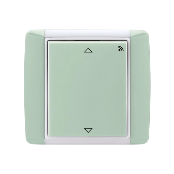 A P8 R R egy falra szerelhető redőny nyomókapcsoló, ami egyaránt képes manuális és vezeték nélküli kommunikációra is.