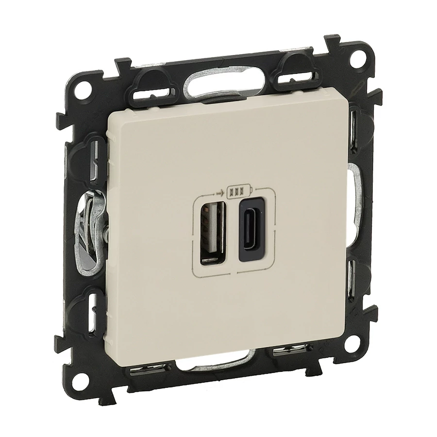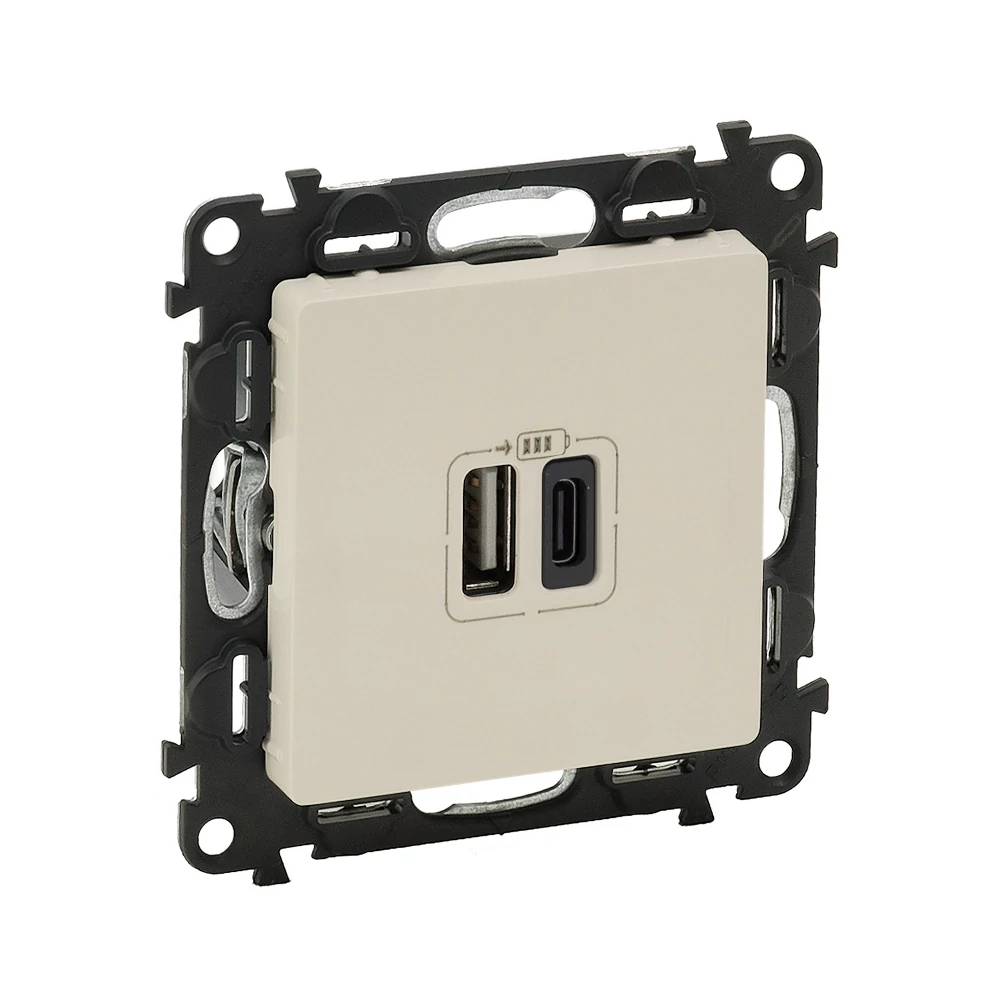 Legrand 753206 Valena Life töltőaljzat kettős USB C-típusú + USB A-típusú csatlakozóval, elefántcsont
