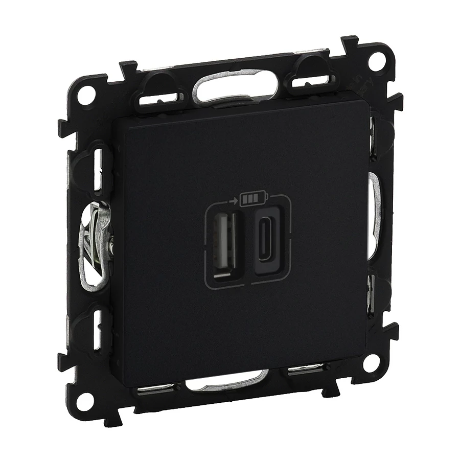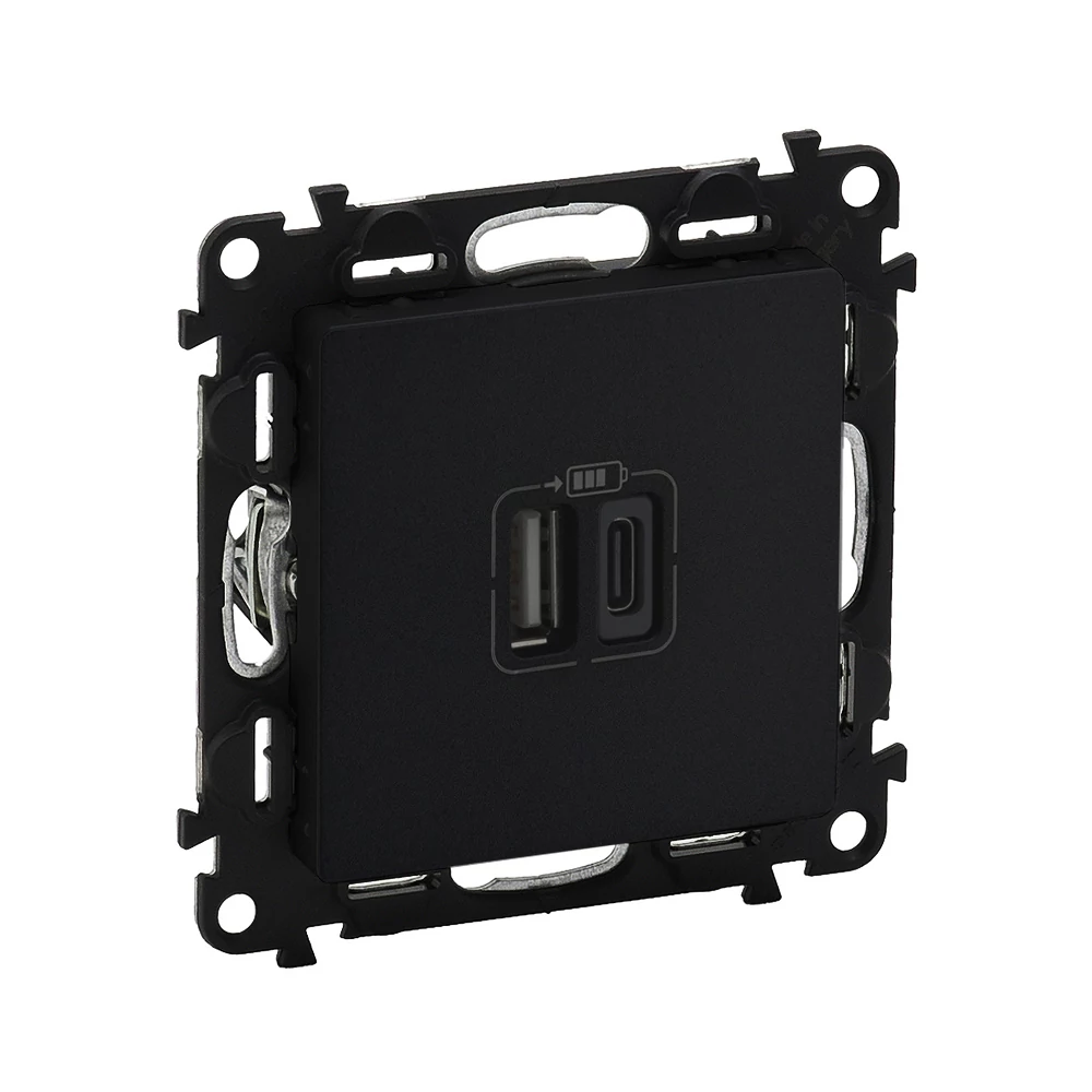 Legrand 753106 Valena Life töltőaljzat kettős USB C-típusú + USB A-típusú csatlakozóval, fehér