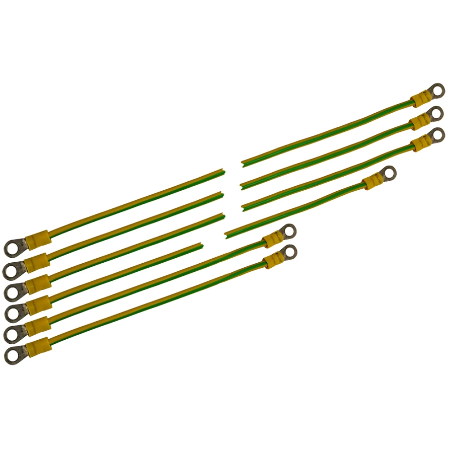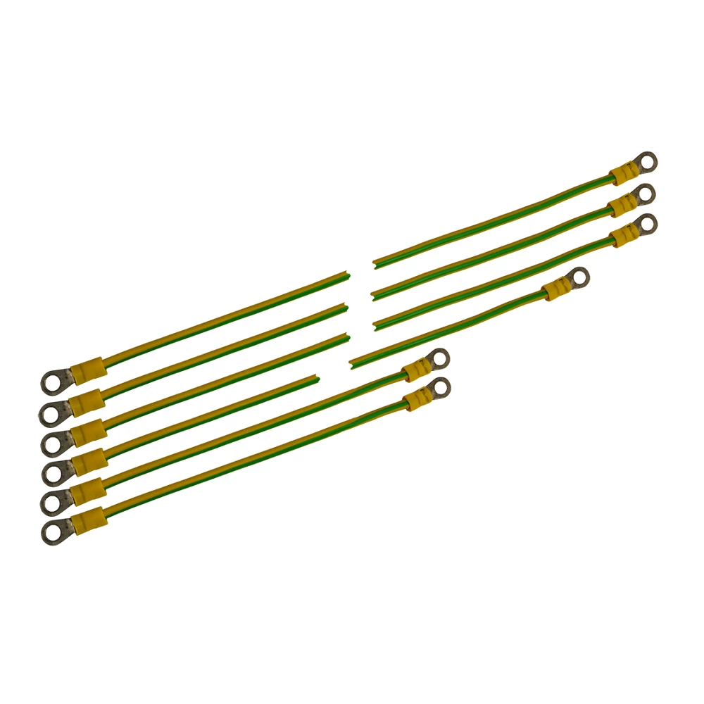 - 4mm2 –es vezetékek Ø11/Ø6,5mm átmérőjű kábel véggekkel. - Megjegyzés: a szett a következőket tartalmazza 6 földelő kábel, 12db M6 anya, 12db M6 alátét