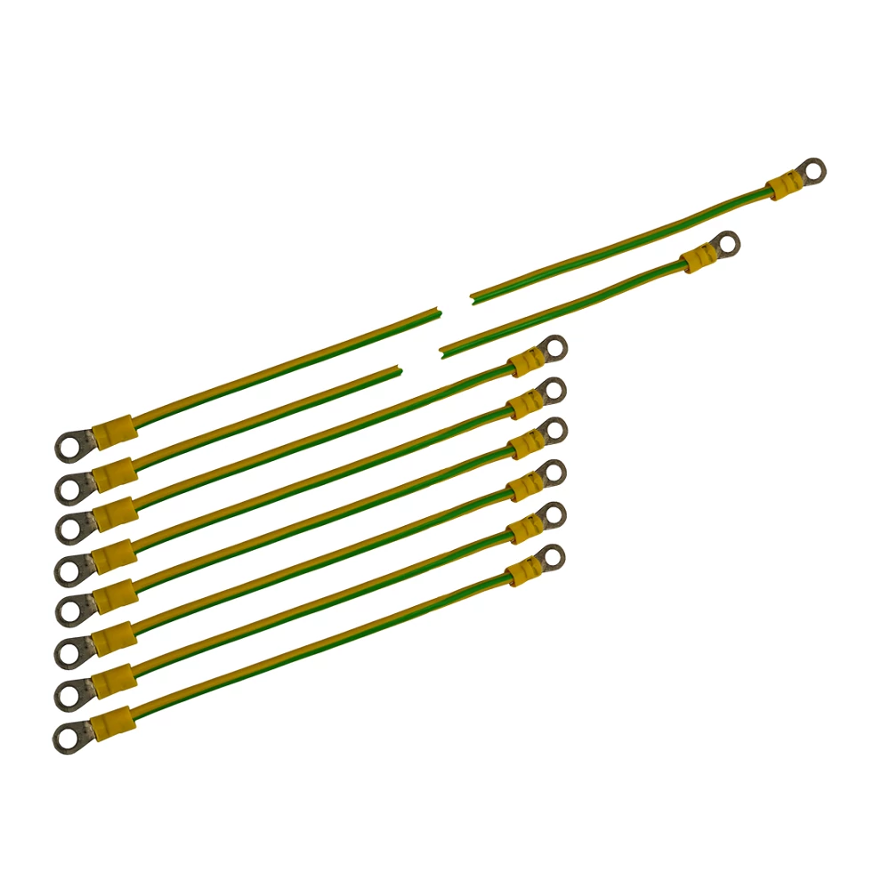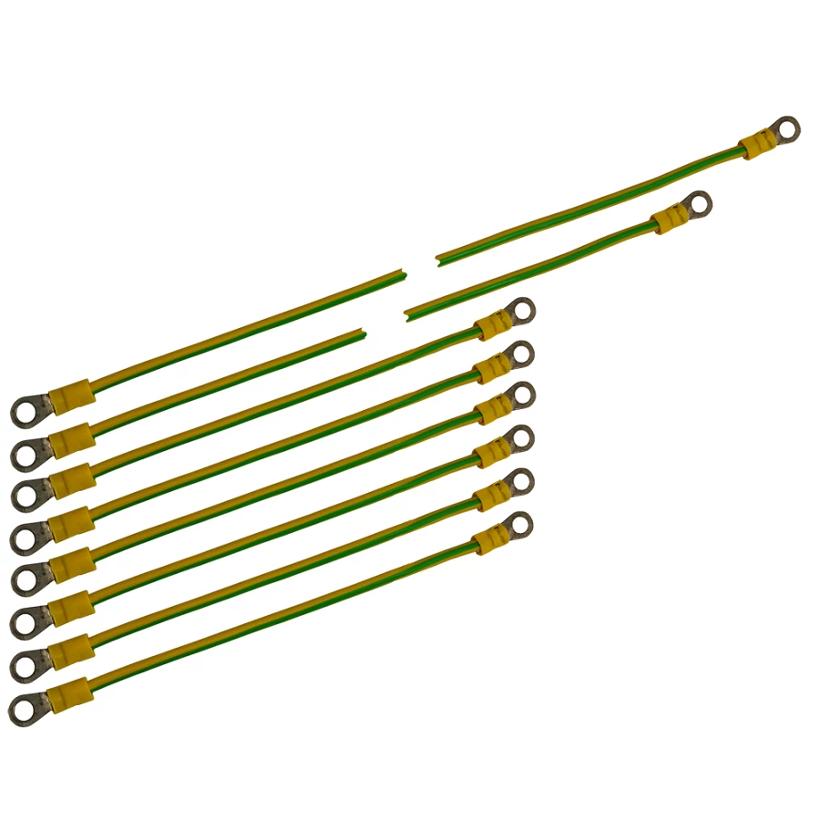 - 4mm2 –es vezetékek Ø11/Ø6,5mm átmérőjű kábel véggekkel. - Megjegyzés: a szett a következőket tartalmazza 8 földelő kábel, 16db M6 anya, 16db M6